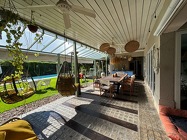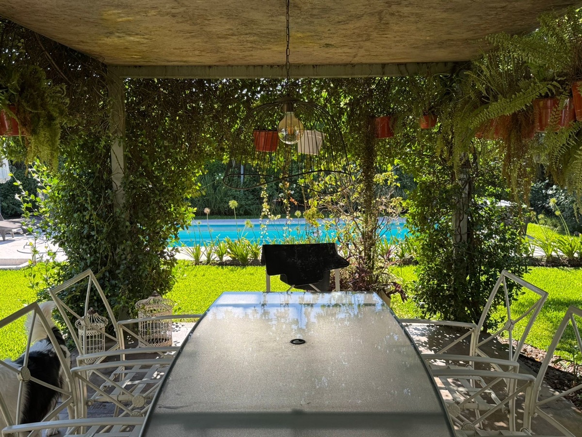 Pérgola, galería tiene cerramientos. La carpintería de PVC. ⁠planta alta con parquet flotante. asador con parrilla de acero inoxidable. Dependecia de servicio.
