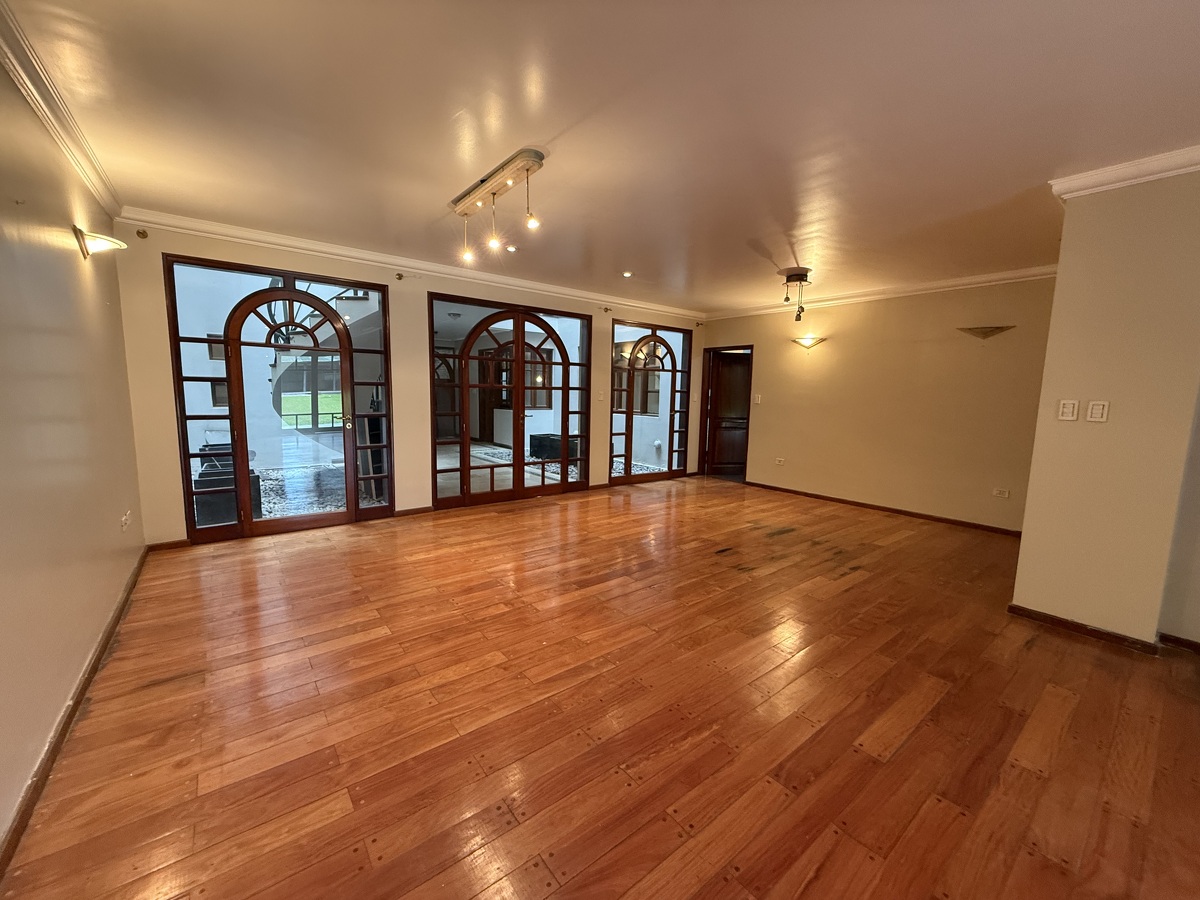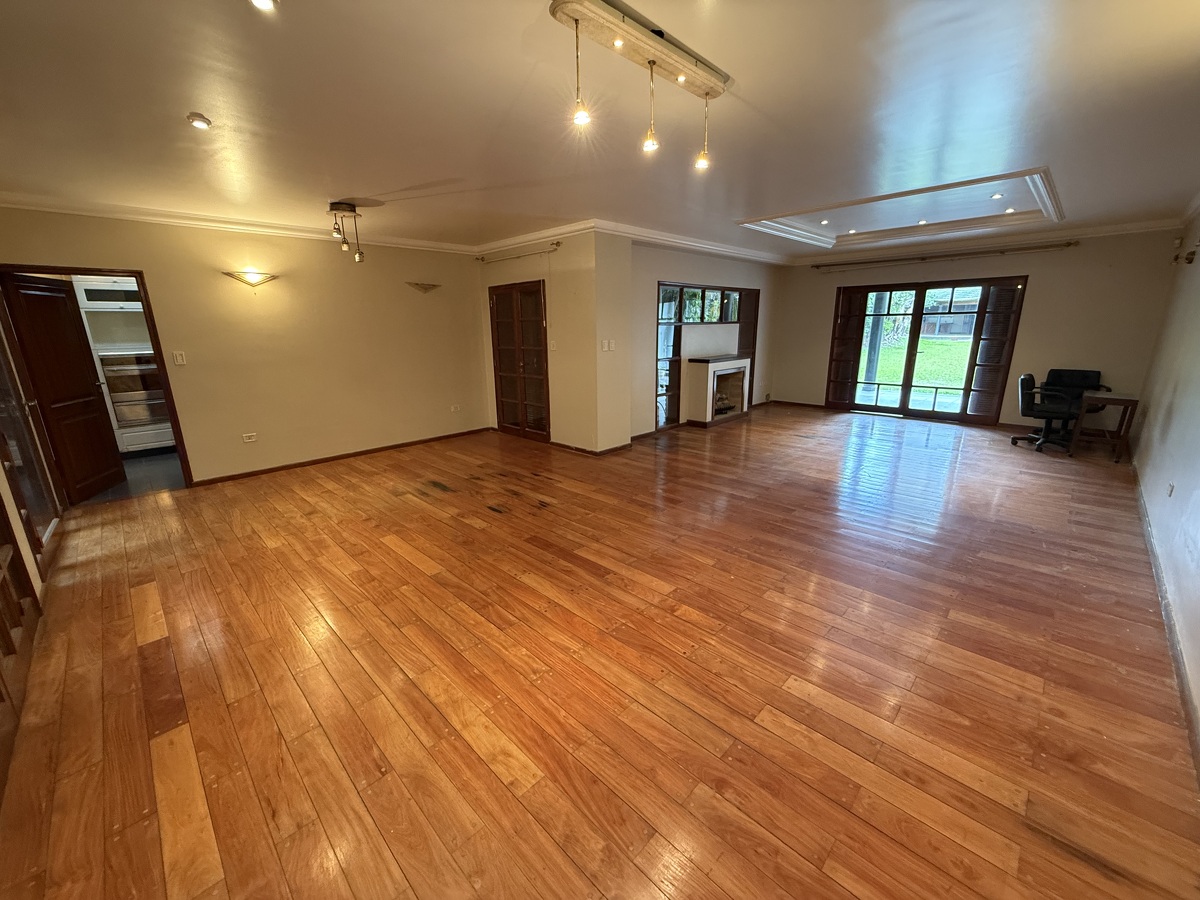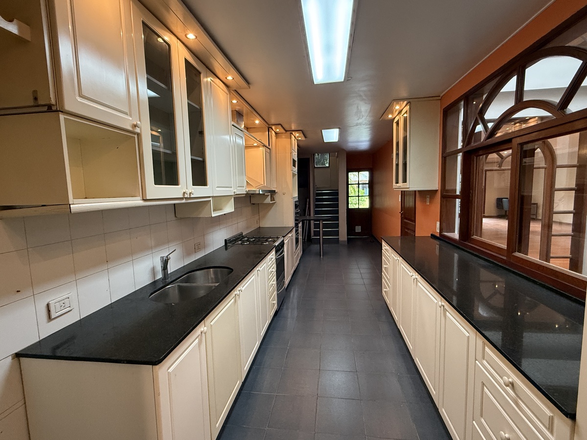 PB: Amplia cocina. Estar comedor. Living comedor amplio. Hall enorme. Escritorio. Toilette. Fondo amplio con quincho. Asador. Piscina y baño.